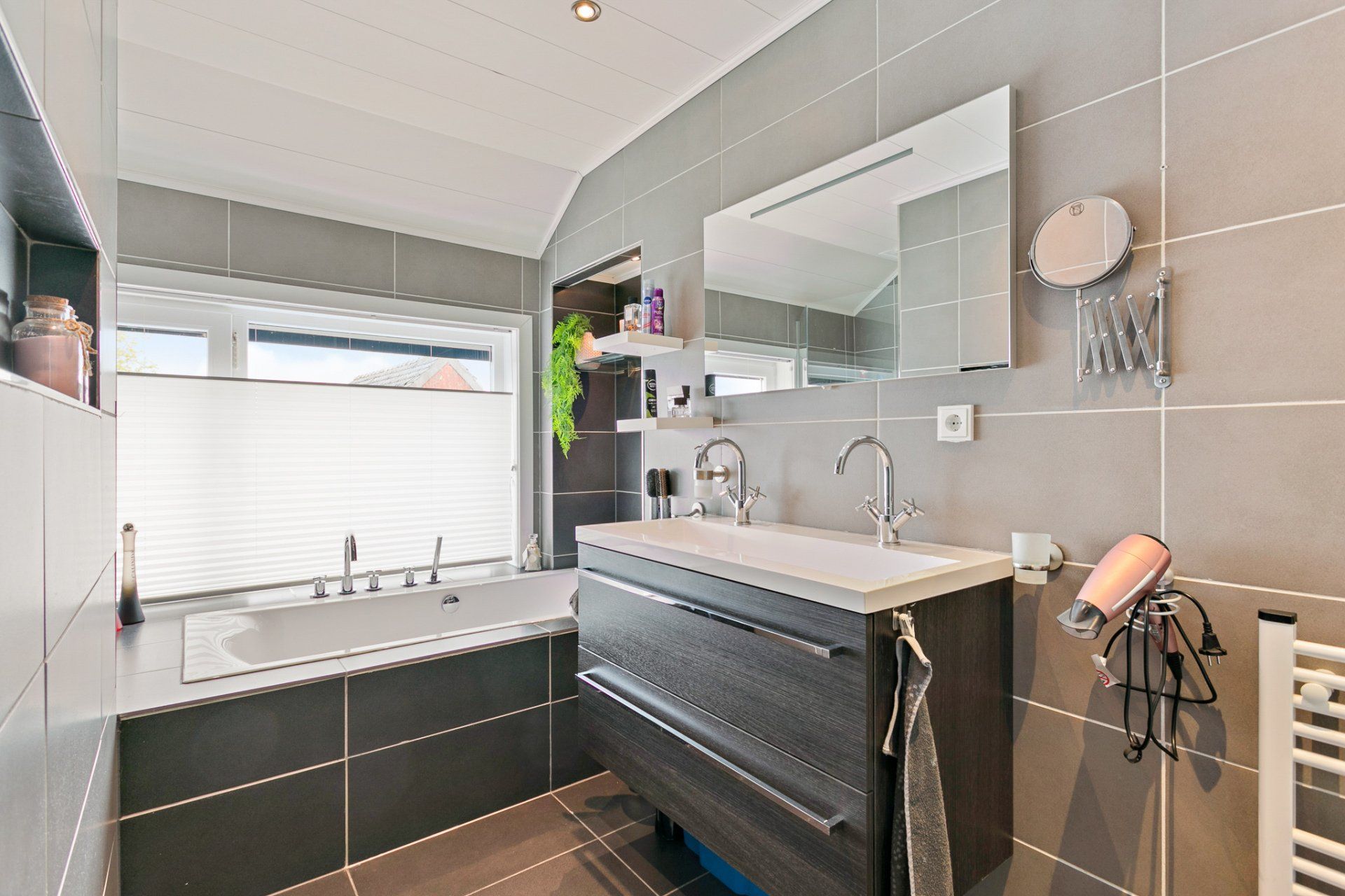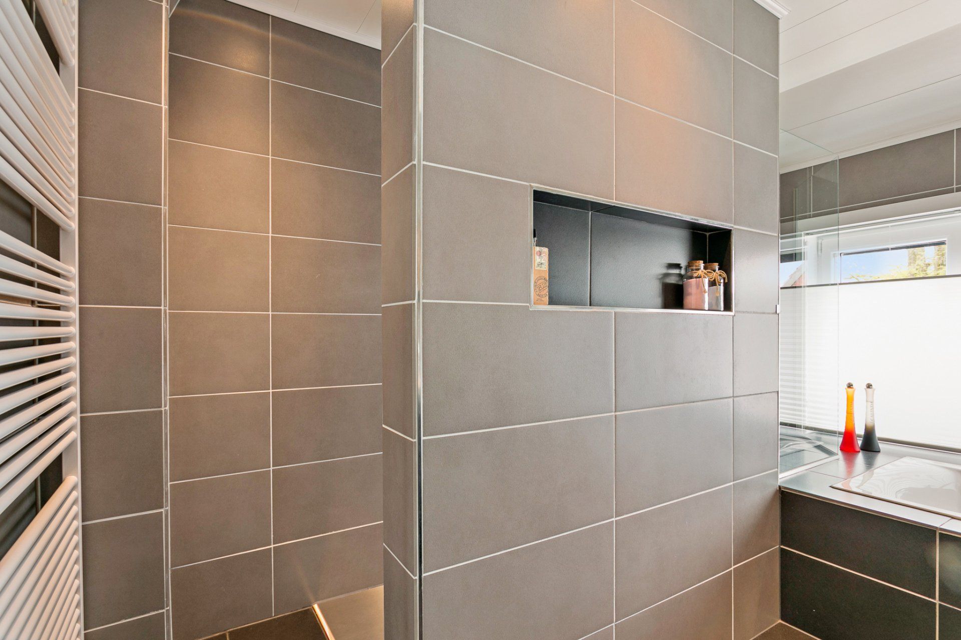 - Badkamer met bad en douche