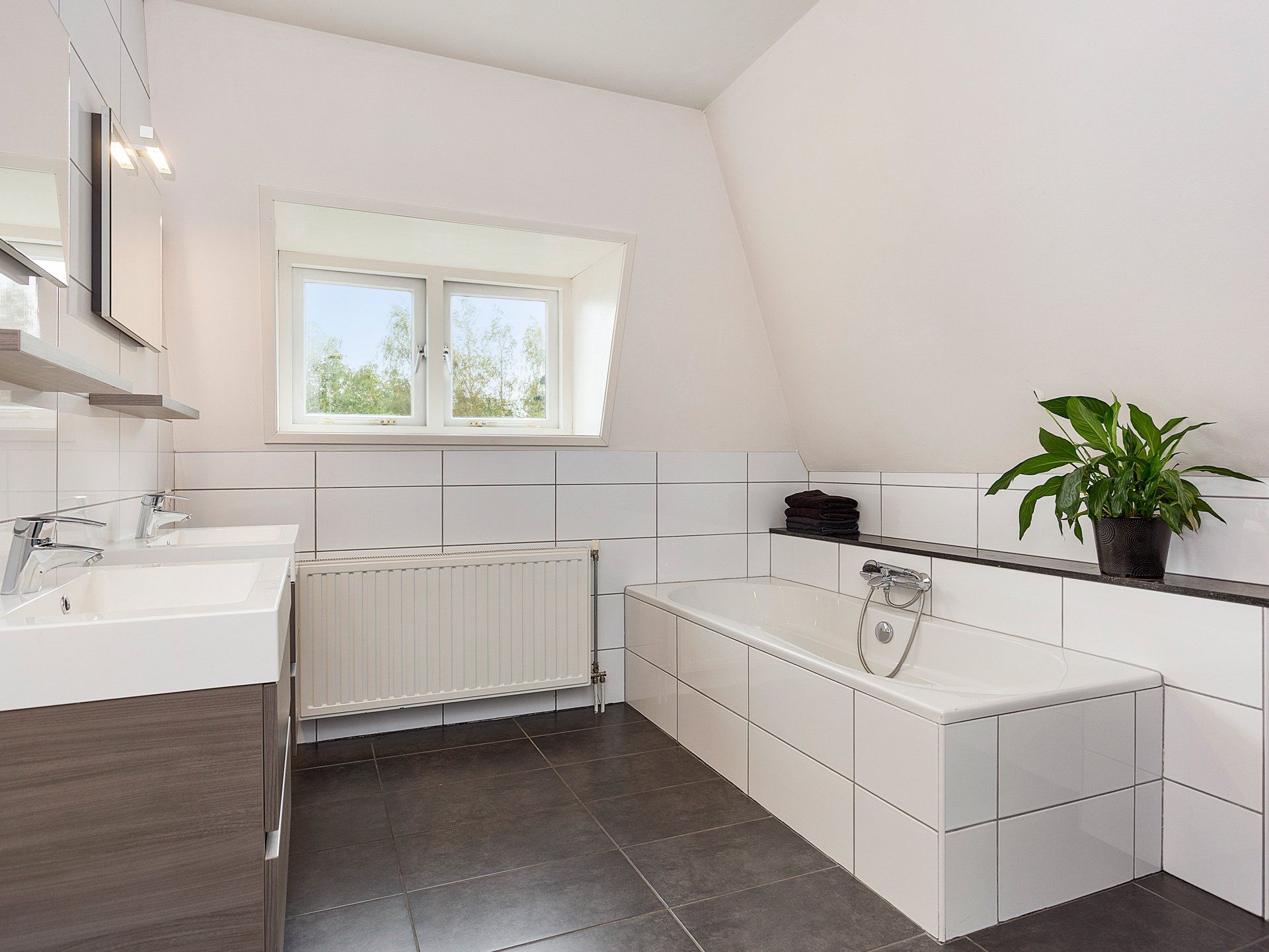 - ruime badkamer met bad en douche