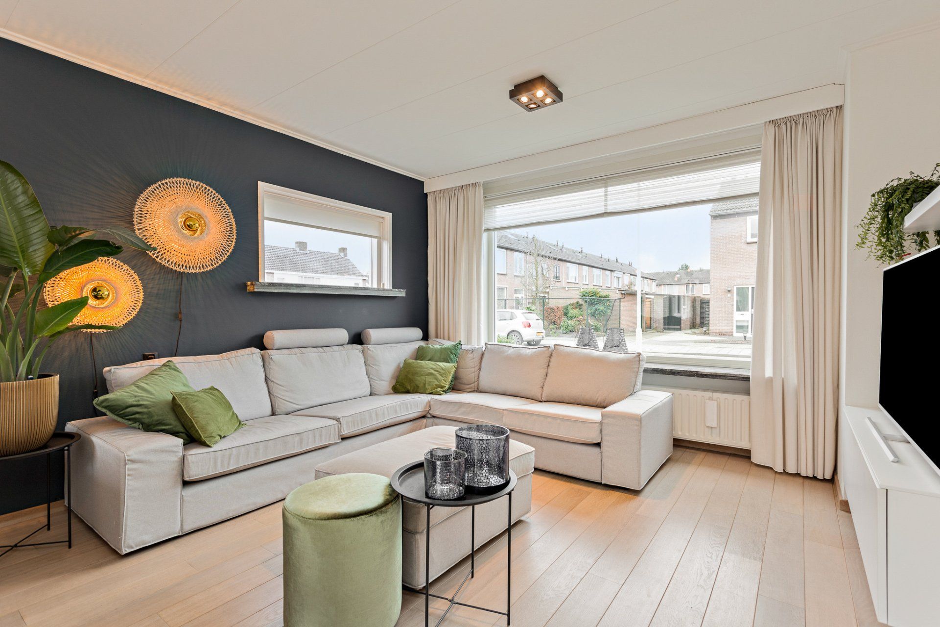 - Deels houten kozijnen
