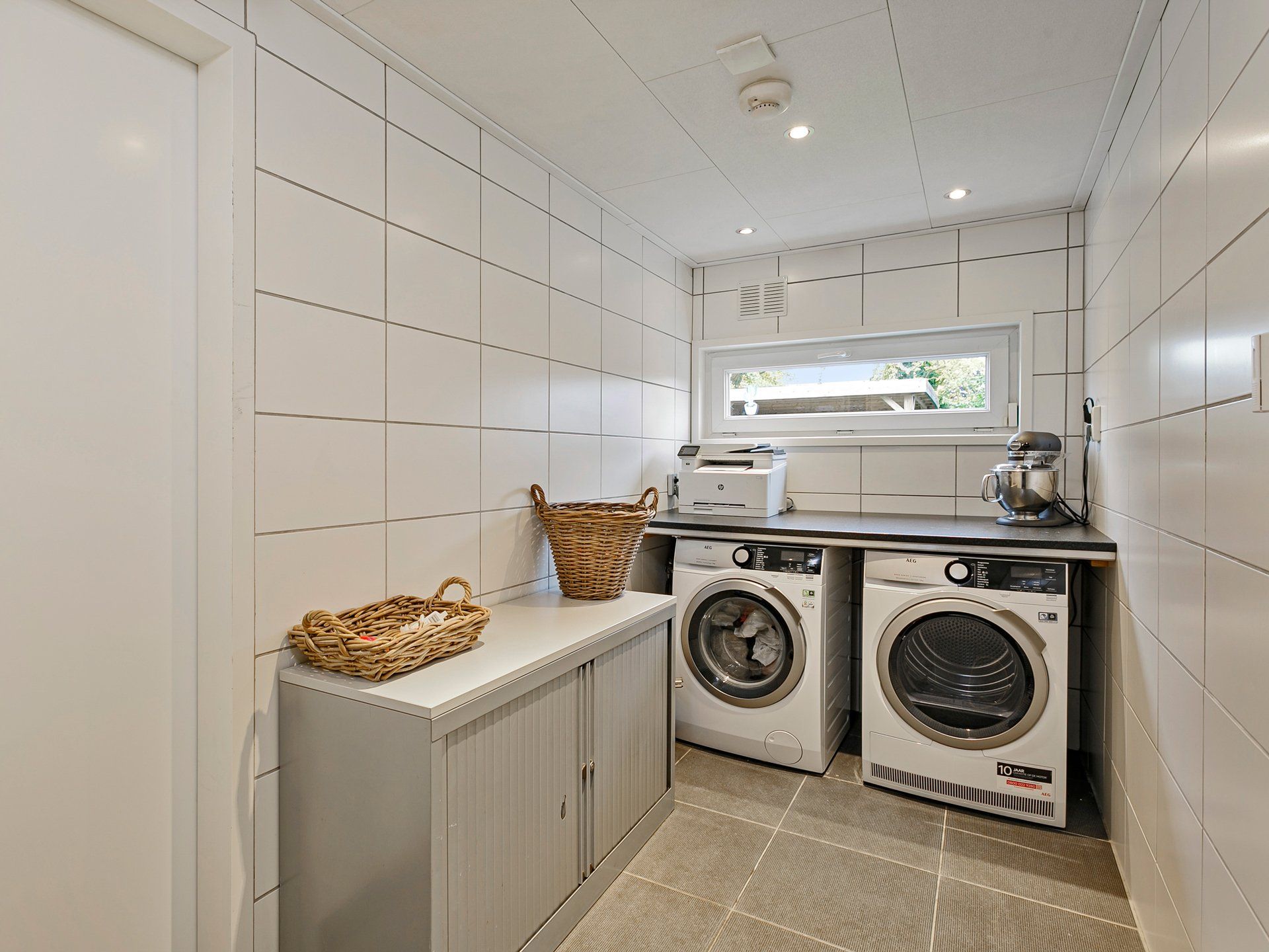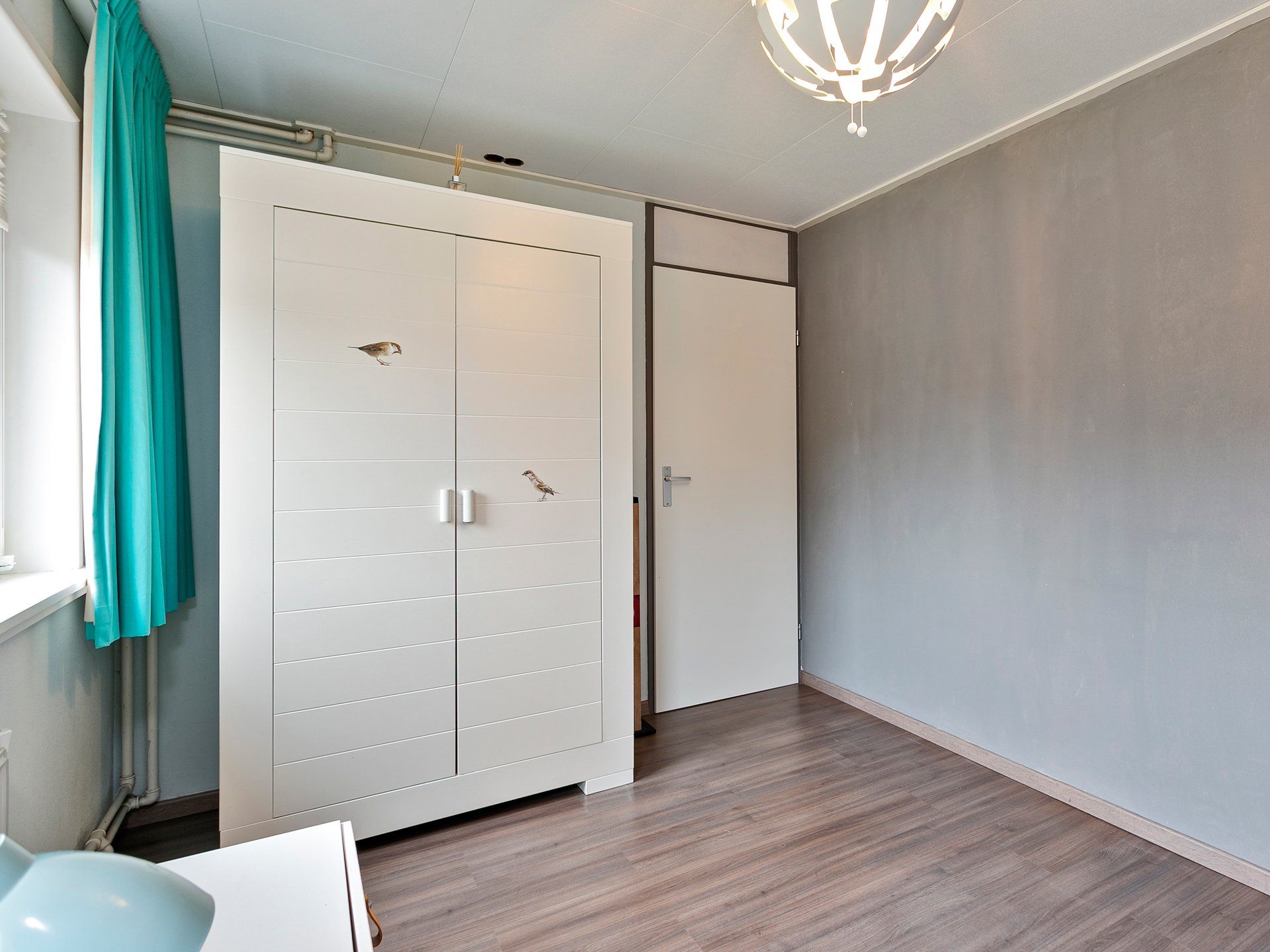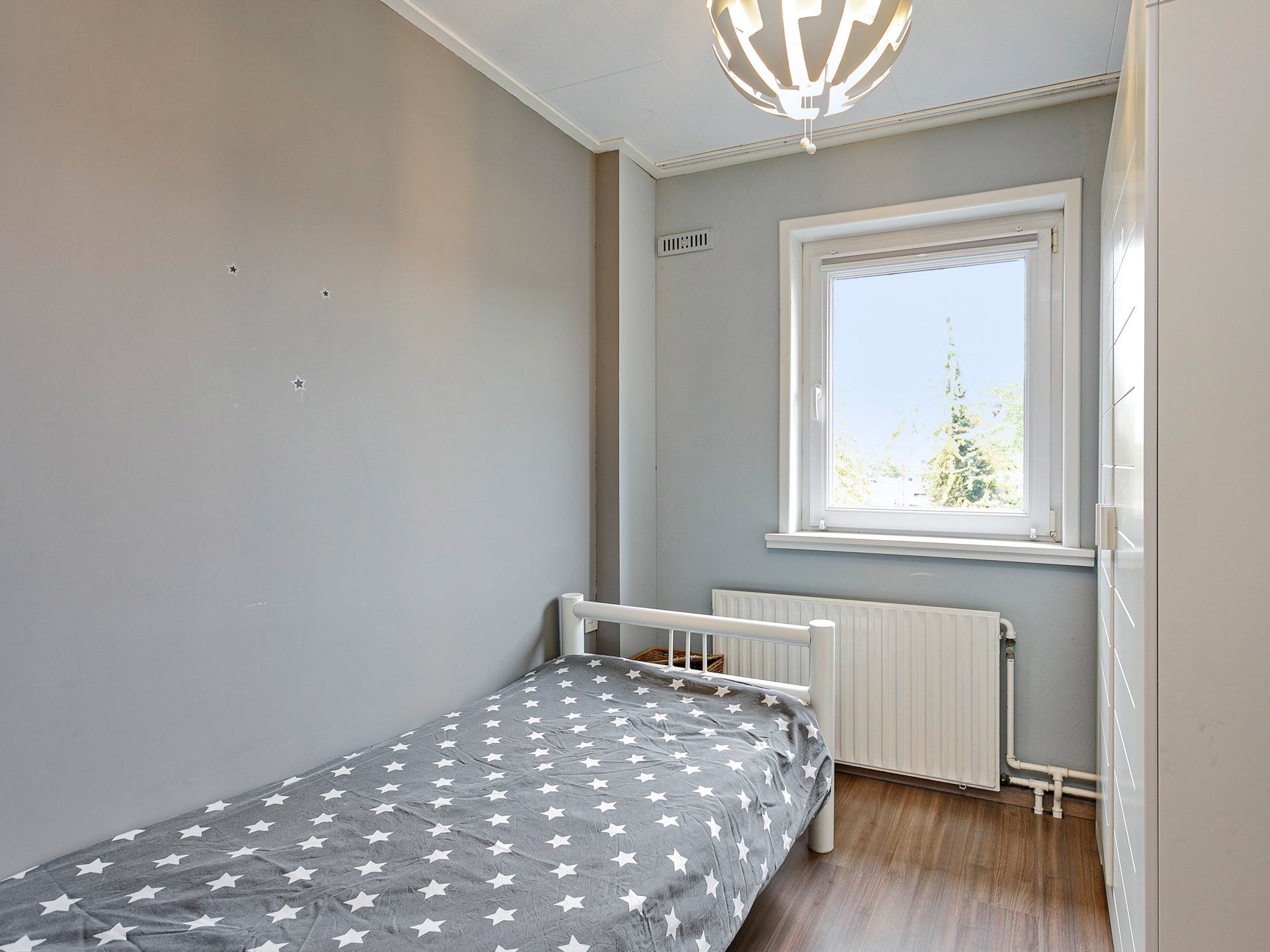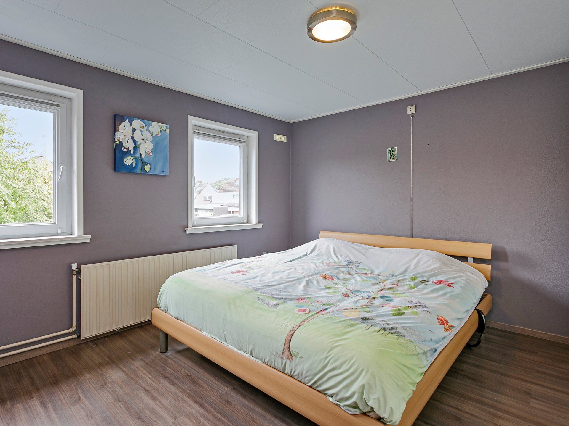 Ook op deze verdieping overal kunststof kozijnen met dubbel glas en rondom elektrisch bedienbare rolluiken die, als je dat wilt, ook automatisch dichtgaan als de zon op de ramen staat. Zowel aan de voor- als aan de achterkant een ruime slaapkamer met twee ramen. Daarnaast nog een derde, wat kleinere, slaapkamer aan de achterzijde van de woning.