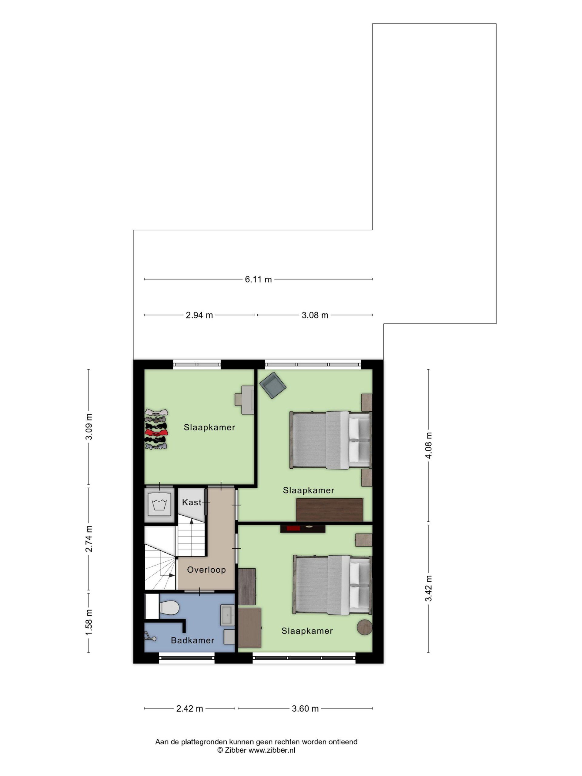 Met de vaste trap bereik je de overloop vanwaar je toegang hebt tot drie slaapkamers en de badkamer. Ook op de slaapkamers zijn alle kozijnen vervaardigd van kunststof en voorzien van dubbel glas. Voor alle ramen in de slaapkamers zijn horren aanwezig.