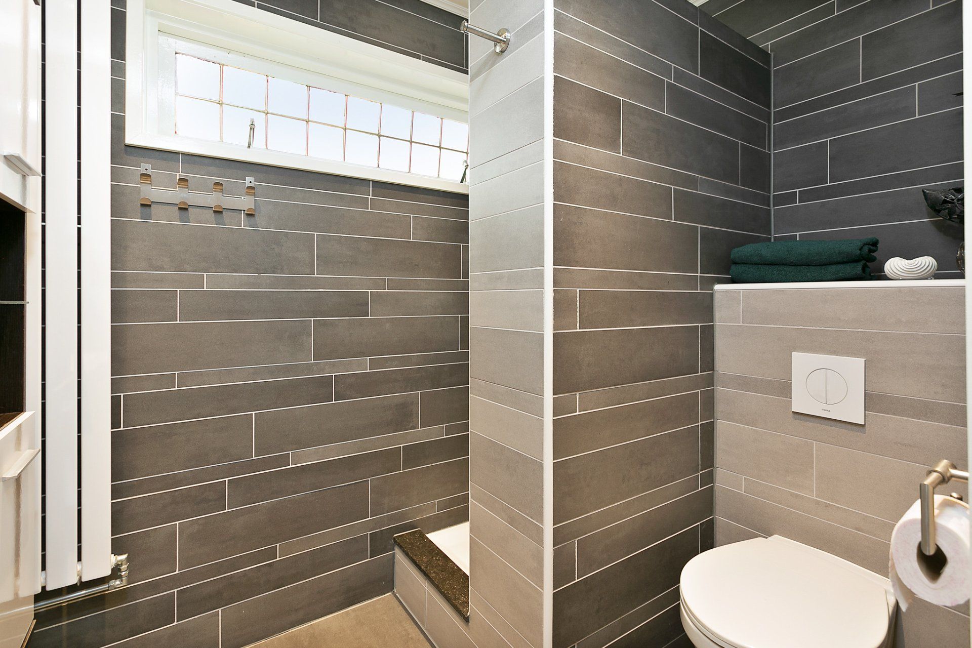 De badkamer is in 2017 vernieuwd. Hier zit nog wel het originele houten kozijn met enkel glas, maar de rest van de badkamer is geheel gerenoveerd. De badkamer is voorzien van een heerlijke regendouche, een wastafelmeubel, een moderne radiator en een tweede toilet.